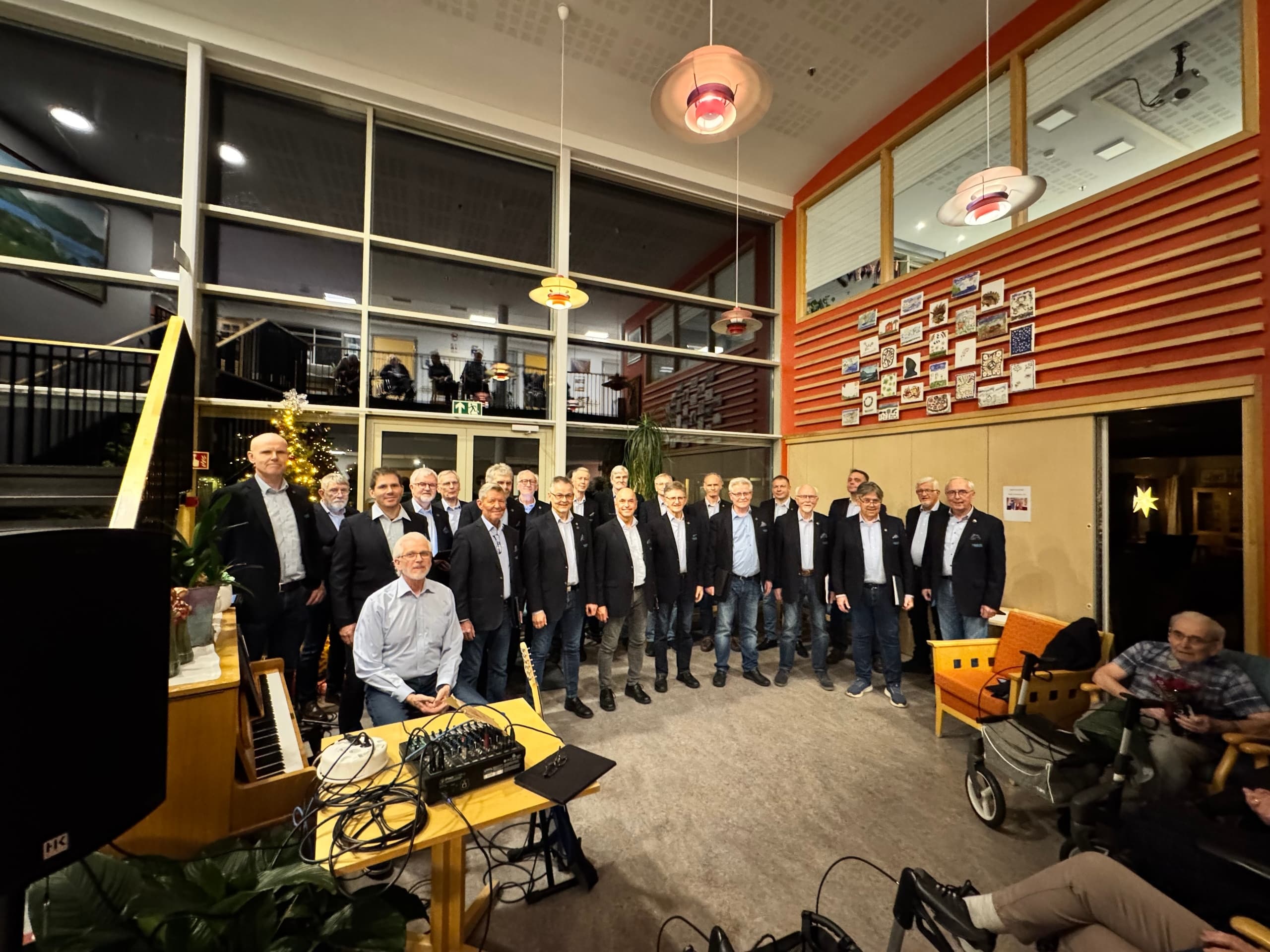 Sang på Råkhaugen og Skåla mandag 15. desember. Gunnar, æresmedlem, fikk sang og blomster